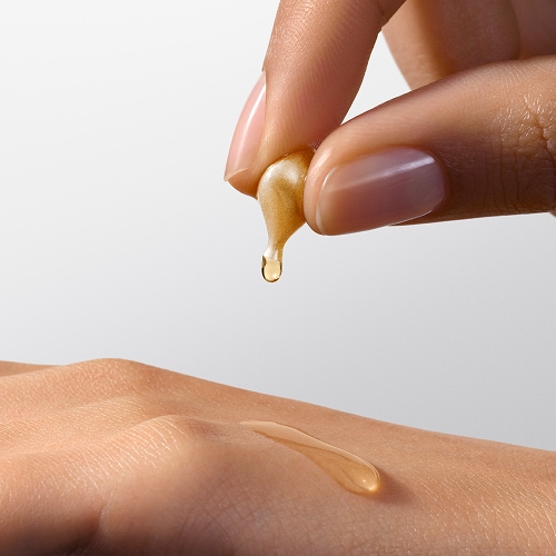 Mit einer einfachen Geste setzt die Kapsel ein seidiges Öl frei, das sofort auf der Haut aufliegt, ohne einen fettigen Film zu hinterlassen.